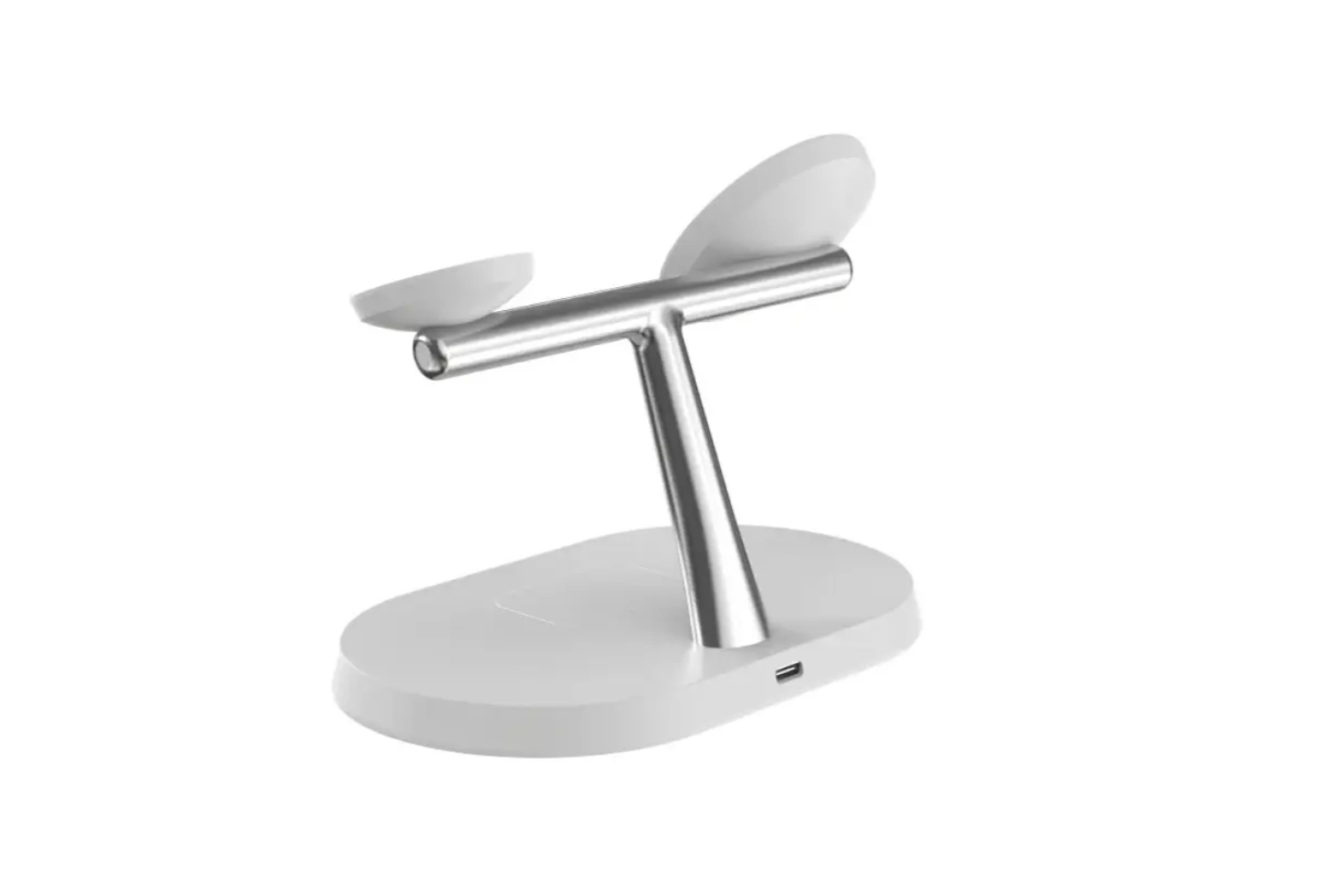 Бездротова зарядка 3в1 Док станція QINETIQ Magsafe Qi2 T255 15W для Samsung/iPhone 12/15, AirPods,GalaxyBuds, AppleWatch, GalaxyWatch (Qi2 certificated) біла
