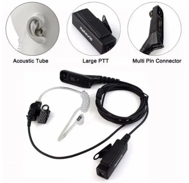 Гарнітура для радіостанції Motorola DP4XXX Series з повітроводом має окремо винесену кнопку PTT (передавання), поєднану з мікрофоном, яку можна прикріпити в будь-якому місці. Звук передається за динаміком, який поєднаний із прозорим повітроводом, роблячи його в такий спосіб мало помітним. Навушник/динамік щільно прилягає до вуха, що робить ваші розмови конфіденційними.