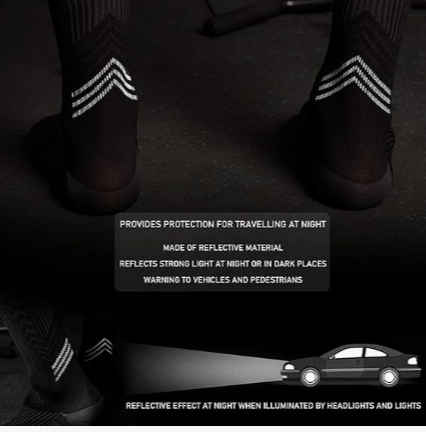 - ВІДБІЛЮЧИЙ ЕФЕКТ – Наші спортивні компресійні шкарпетки оснащені глянсовою світловідбиваючою смужкою навколо щиколотки, що робить вас легшими для інших, коли ви бігаєте, катаєтеся та залишаєте інші заходи на свіжому повітрі вночі. Він служить попередженням для транспортних засобів і транспортних засобів.