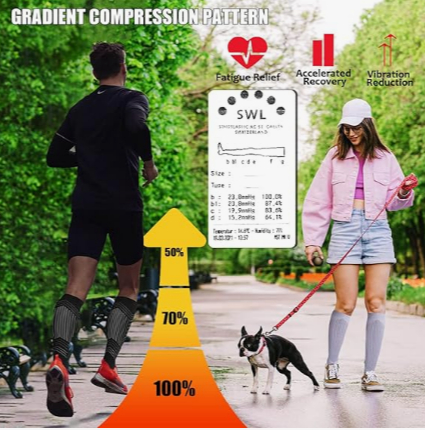 - ПРИСКОРЕНА ЦИРКУЛЯЦІЯ КРОВІ – Компресійні шкарпетки 20-30 мм рт.ст. виконання прогресивного стиснення, при цій силі стиснення зростає від гомілки до щиколотки. Прискорює кровообіг і знімає біль у ногах, насінні та тому. І зменшити накопичення молочної кислоти після інтенсивних фізичних вправ.