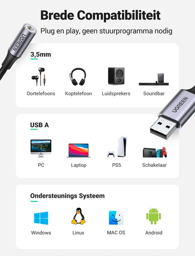 Звукова карта USB на 3.5 мм Jack з підтримкою мікрофона TRRS DAC 24bit 96kHz – це високоякісний аудіоадаптер від виробника Ugreen. Завдяки підтримці TRRS та мікрофона, ви можете використовувати цей адаптер зі своїм смартфоном, планшетом або ноутбуком з 3.5 мм аудіо роз’ємом для запису аудіо або проведення відеоконференції з мікрофоном.