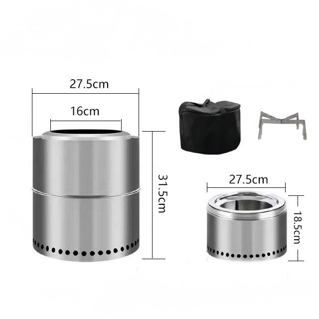 Нагрівач компактний та легкий. Його розміри становлять: довжина – 24 сантиметри, висота – 12 сантиметрів. Виготовлена піч-трісочниця з міцної сталі, вона стійка до дії жару, і захищена від іржі. У складеному вигляді пальник вміститься на долоні. Опорні стрижні повертаються відповідно до розміру котла. Конструкція витримує навантаження до двадцяти чотирьох кілограмів.