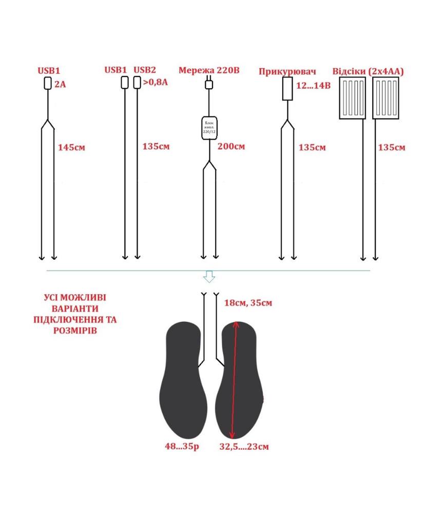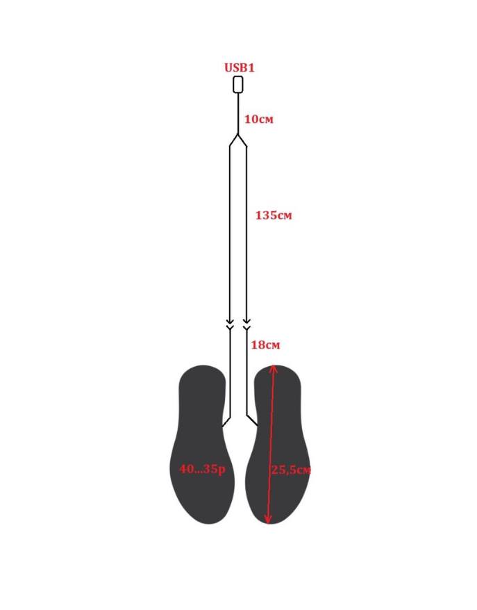 - Комплект: дві устілки 40 розміру з можливістю підрізки до 35 розміру, 2 кабелі, які обʼєднуються в 1 вихід USB.