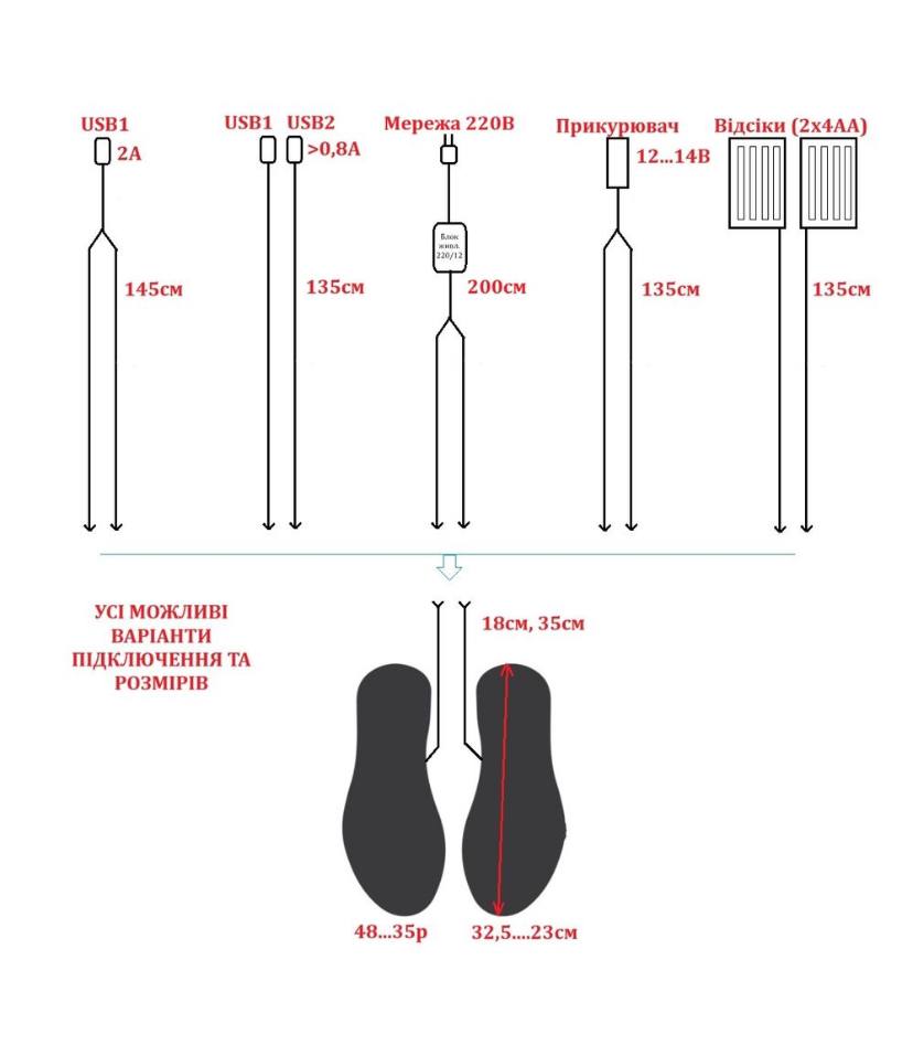 - Нагрівання 65% поверхні від носка (довжина нагрівального елемента 20 см).