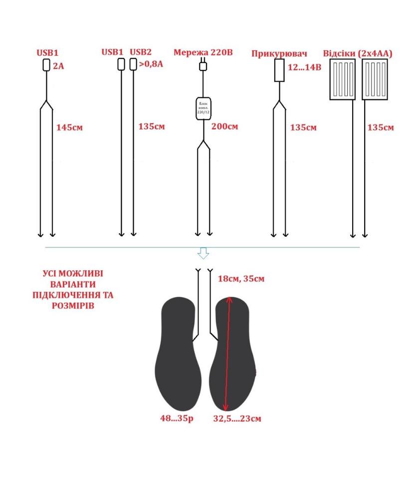 - Довжина дроту від устілки 35 см + 135…200 см (кабель, що підключається).