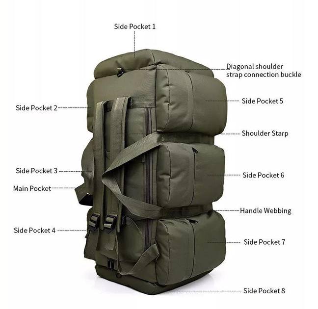 Велика тактична сумка-рюкзак для військових ЗСУ на 90 літрів BT1-90 олива