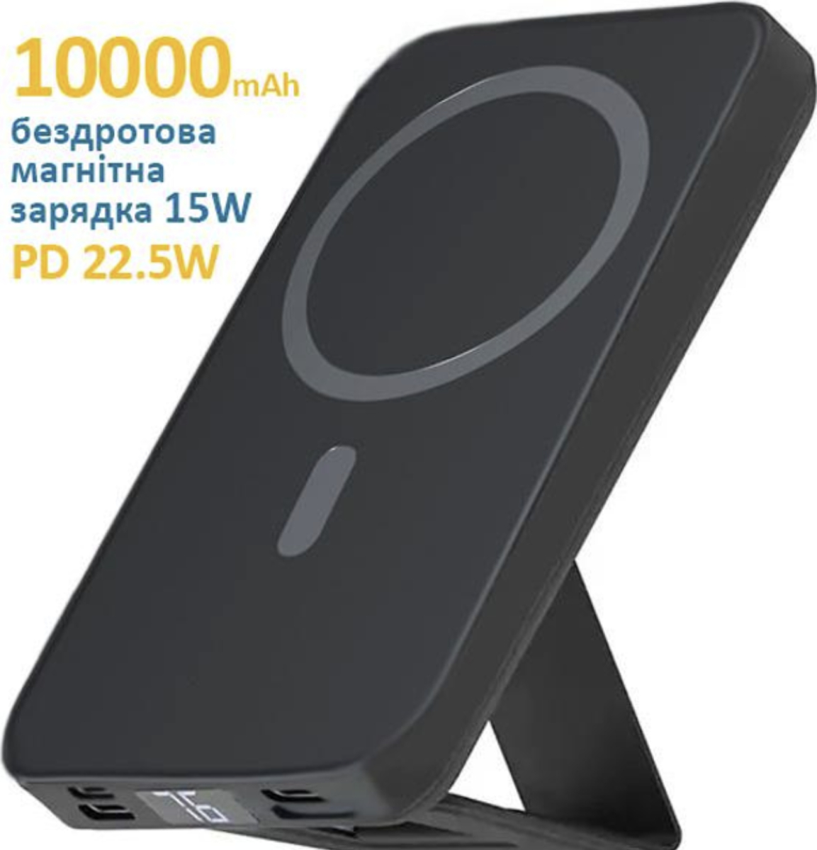УМБ Павербанк 10000 mAh PD 22.5W Міні, Villini бездротова магнітна зарядка 15W Magsafe, швидка зарядка 3.0 PD, для айфона, телефона, роутера, вбудовані кабелі Lightning, Type-C